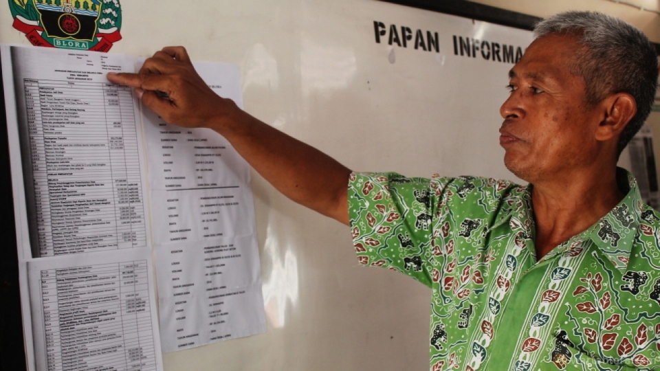 "Kantor desa ini dekat dengan sekolah TK. Jadi kami khawatir jika ditempel di luar, di papan pengumuman itu, akan dicopoti sama anak-anak," kata kepala desa yang mantan kepala sekolah ini.