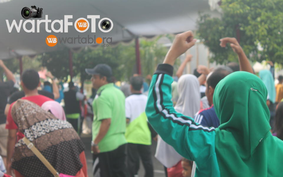 Sebelum jalan sehat, tenaga medis dan paramedis yang merayakan ulang tahun RSUD dr. Soetijono mengikuti senam di pelataran RSUD. Senam juga diikuti beberapa pejabat pemerintahan Kabupaten Blora.