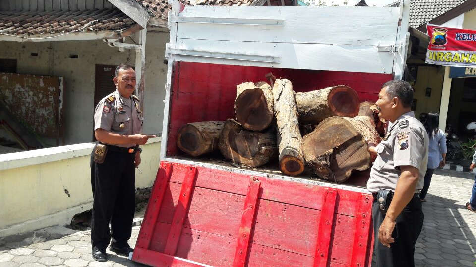 "Kami pun melakukan penghadangan. Saat diperiksa petugas, mereka (bertiga) tidak bisa menunjukkan dokumen yang sah terkait angkutan kayu Sonokeling itu," ujar Kapolsek.