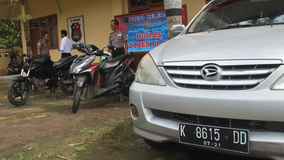 "Kami telah menyita satu unit kendaraan roda 4 merk Daihatsu Xenia warna silver dengan nopol K-8615-DD, satu unit kendaraan roda dua merek Yamaha Vixion warna hitam tanpa plat nomor, dan satu unit kendaraan roda dua merek Honda Vario," papar Wakapolres dalam gelar jumpa pers, Senin.
