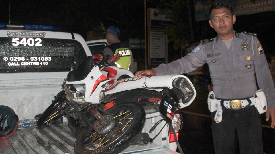 Sial bagi Anggi Andansari, usia belasan tahun juga, yang mengendarai sepeda motor Suzuki tanpa plat nomor. Ia yang melaju dari arah berlawanan tak menyangka ada sepeda motor yang nyelonong dari depan.