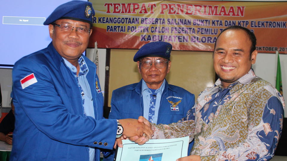 Sorenya, Partai Demokrat memasukkan berkas dengan jumlah keanggotaan 1.315. Partai besutan Susilo Bambang Yudoyono ini memasukkan berkas pada pukul setengah 4 sore. Demokrat datang dengan rombongan anggota DPRD Kabupaten Blora yang ada di Fraksi Partai Demokrat. Ada 8 anggota Partai Demokrat yang jadi anggota DPRD Kabupaten Blora periode 2014-2019, termasuk salah satunya jadi Ketua DPRD Kabupaten Blora.