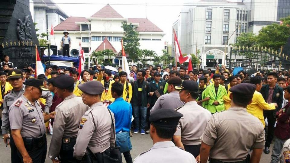 Ratusan mahasiswa yang tergabung dalam Gerakan Mahasiswa Peduli Kendeng melakukan aksi solidaritas mendukung perjuangan warga Rembang yang menggugat Gubernur Jawa Tengah mematuhi putusan MA untuk menghentikan pabrik Semen Indonesia.
