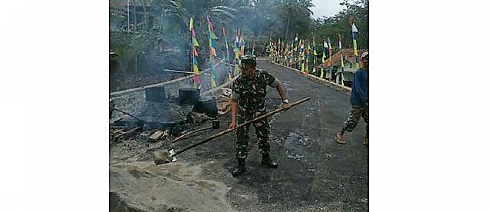 BANYUMAS, (wartablora.com) - ''Ternyata tidak gampang ya mengaspal jalan itu,'' ungkap Danramil 02/Baturaden, Kapten Inf. Ruswanto ketika mencoba mengerjakan pemertaan aspal di pembangunan jalan Siliwangi yang merupakan salah satu sasaran fisik TMMD Reguler ke-99 Kodim 0701/Banyumas.