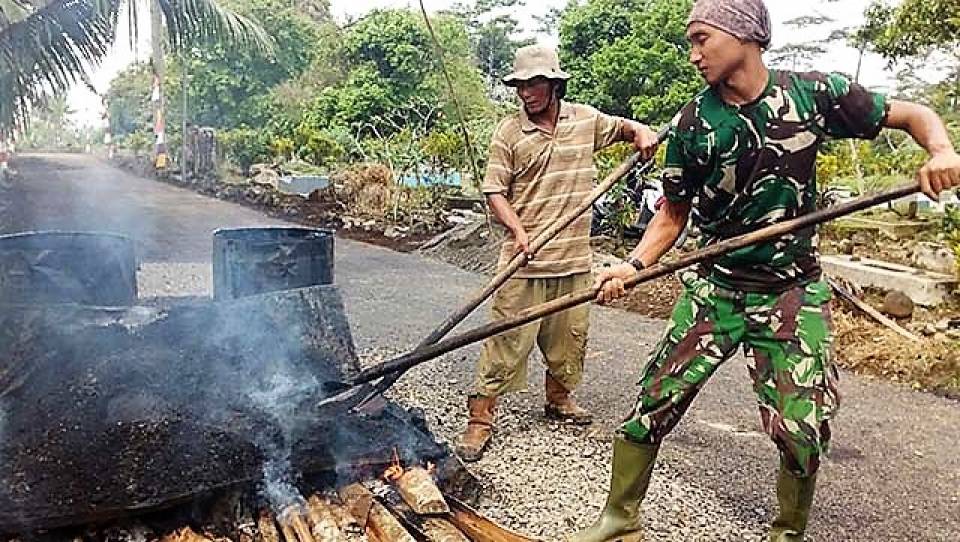 Pembakaran Aspal Terakhir di Lokasi TMMD