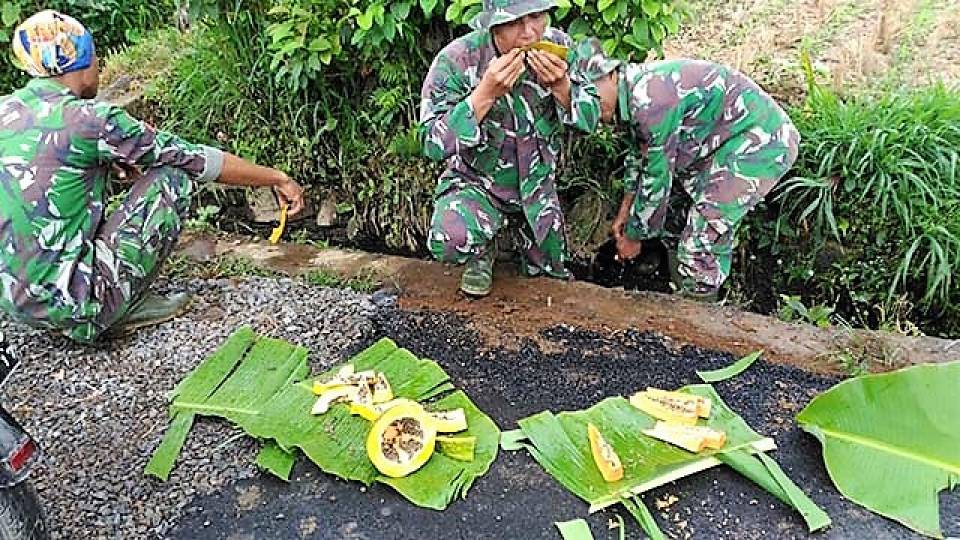 Disaat bekerja di lapangan, yakni pembereman jalan Siliwangi, sebagai tanda pengharagaan terhadap seorang warga yang menawari buah pepaya, para Satgas itu memnerima dan menyantapnya dengantidak lupa mengucapkan ucapan terimakasih. *)