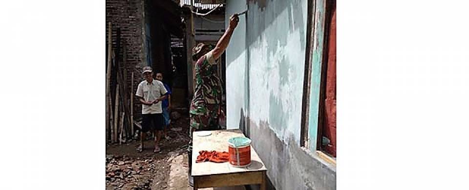 BANYUMAS, (wartablora.com) - Salah satu kesibukan sejumlah anggota Satgas TMMD Reguler ke-99 Kodim 0701/Banyumas di Desa Rempoah saat ini adalah mengecat Rumah Tidak Layak Huni (RTLH) milikmpuluhan warga Desa Rempoah yang menjadi salah satu sasaran fisik TMMD tersebut.