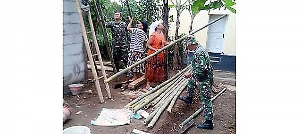 Seperti dalam rehab Rumah Tidak Layak Huni (RTLH) milik Kirno, sejumlah ibu-ibu juga ikut membantu langsung dalam kegiatan itu. Mereka bersama-sama dengan Satgas TMMD Reguler Banyumas untuk menyelesaikan pekerjaan rehab RTLH.