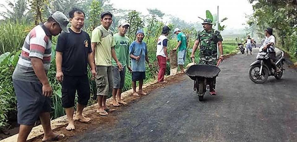 BANYUMAS, (wartablora.com) - Ada ritual yang dilakukan warga dengan melibatkan seorang Satgas TMMD, yakni seiring dengan selesainya pengerjaan sasaran fisik berupa pengaspalan jalan Siliwangi, salah satu sasaran fisik TMMD Reguler ke 99 Kodim 0701/Banyumas, dilakukan pengarakan alat kereta dorong di sepanjang jalan itu.
