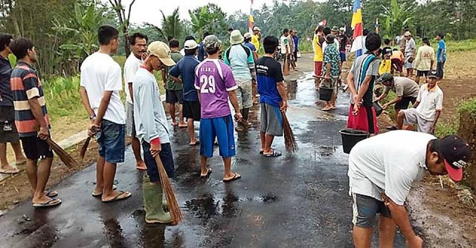 Dengan membawa peralatan sapu lidi, kain pel, warga Desa Kemutug Kidul dan Desa Rempoah termasuk angggota TNI Satgas TMMD Reguler Kodim Banyumas membersihkan jalan Siliwangi. Hal itu dilakukan agar jalan dengan lebar 4 meter dan panjang hampir 1 Km tersebut agar nampak lebih representatif.