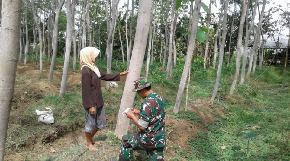 Ibu Kasi (48) pemilik kebon albasia yang terletak di pinggir jalan Makadam yang terlihat sangat subur tanamannya.Melihat hal tersebut Serda Danu bertanya kepada Ibu Kasi alasan dirinya menanam sengon), sedangkan warga lain mayoritas tanam jati.