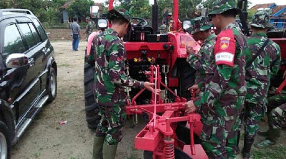 BREBES - Demi untuk kelancaran TMMD Reg Ke-100 Kodim 0713/Brebes, Pakotis TMMD Kodim 0713/Brebes Kapten Inf Sutarno dan Bintara Angkutan Kodim 0713/Brebes Serka Tarsono melakukan pengecekan Alsintan (Alat Mesin Pertanian) yang digunakan dalam TMMD. Banjarharjo, Kamis (12/10).
