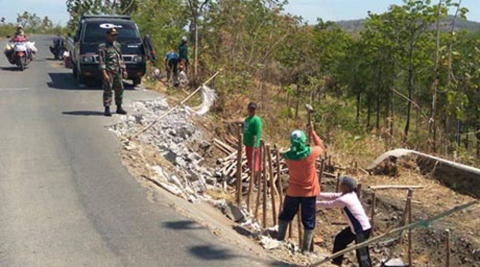 Sertu Jarianto Satgas TMMD bahu membahu bersama masyarakat dan Babinkantibmas Polsek Banjarharjo melaksanakan karyabhakti pembuatan Talud sepanjang kurang lebih 350 m. Kondisi jalan yang amblas sering meresahkan warga sekitar yang menggunakan akses jalan, ini merupakan bentuk respon cepat TNI dalam mengatasi kesulitan rakyat sekitarnya. (Pendim Brebes)