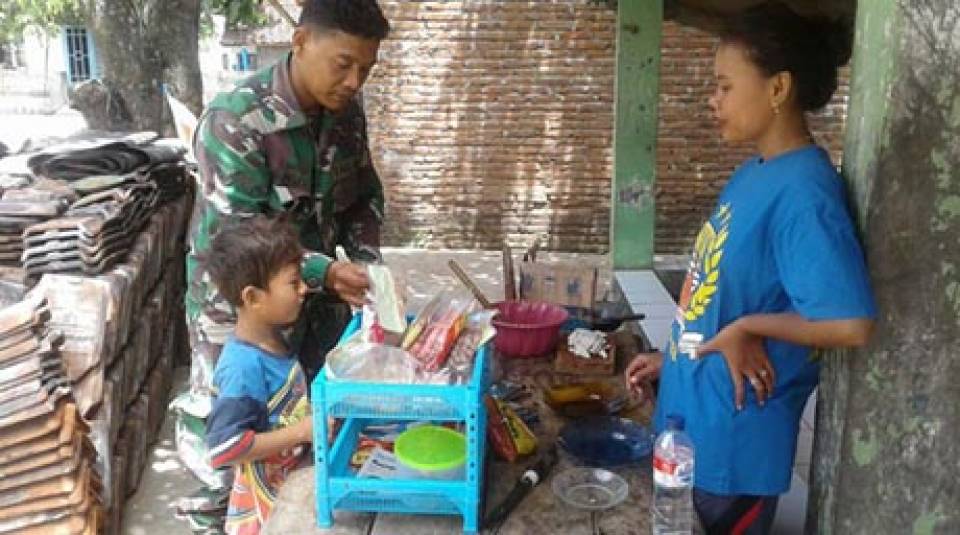 BREBES - Sri Utami (28) isteri Nendi (30) warga Rt 01 rw 02 Dukuh Kopi Desa Cikuya Kec. Banjarharjo mendadak buka warung gorengan mulai jam 8 pagi sampai habis Isya sejak banyaknya TNI Satgas TMMD Kodim 0713/Brebes yang banyak menginap dirumah warga.