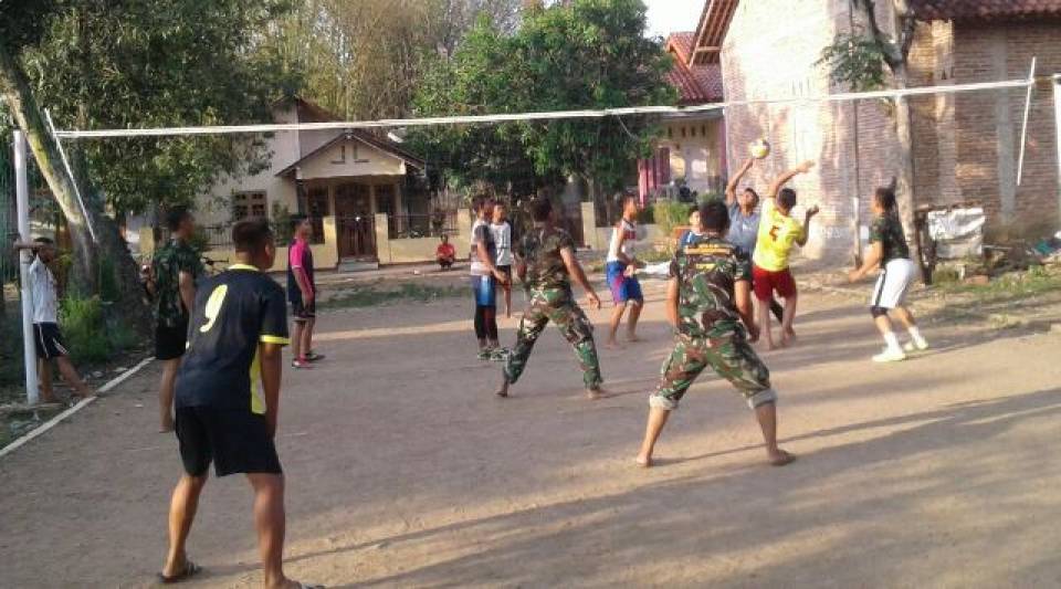 BREBES - Menjalankan olahraga namun tetap bisa memantau pelaksanaan TMMD, itu yang dilakukan oleh beberapa anggota Satgas TMMD disela-sela kesibukannya menjalankan tugas di lokasi TMMD reguler ke - 100 Kodim 0713/Brebes di Desa Cikuya.