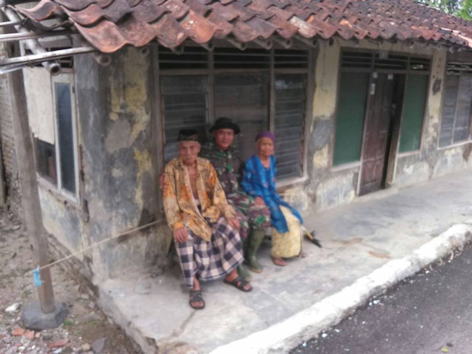 BREBES - Menyusul proses perehaban rumahnya sudah 85 persen direhab oleh jajaran TNI Satgas TMMD reguler ke - 100 Kodim 0713/Brebes, Karseno yang tinggal di RT 3/ RW 2, Desa Cikuya akan terus mendampingi para Satgas untuk membantu agar perehaban rumahnya cepat selesai 100 persen.