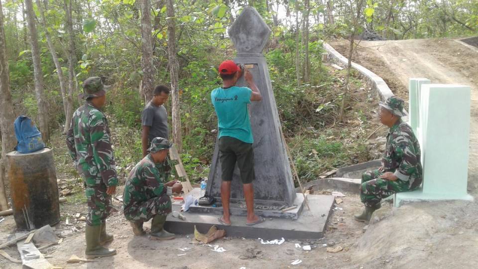 BREBES - Menjelang usainya gelaran TMMD reguler ke - 100 Kodim 0713/Brebes, tepatnya di hari H-6 menuju upacara penutupan TMMD, pembangunan prasasti TMMD sudah mulai dikerjakan antara warga dengan Satgas TMMD.