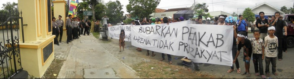Pendemo juga sempat membawa spanduk bertuliskan, "Bubarkan Pemkab Karena Tidak Pro Rakyat." Sementara aktivis dari Lembaga Kajian Budaya dan Lingkungan Pasang Surut, Eko Arifianto yang sempat berorasi malah menyinggung kasus tanah milik Kwarcab Blora.