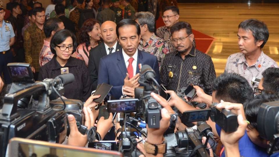 Presiden Jokowi menjawab wartawan usai mengadiri sosialisasi program tax amnesty, di Hotel Clarion, Makassar, Sulawesi Selatan, Jumat (25/11/2016) malam.