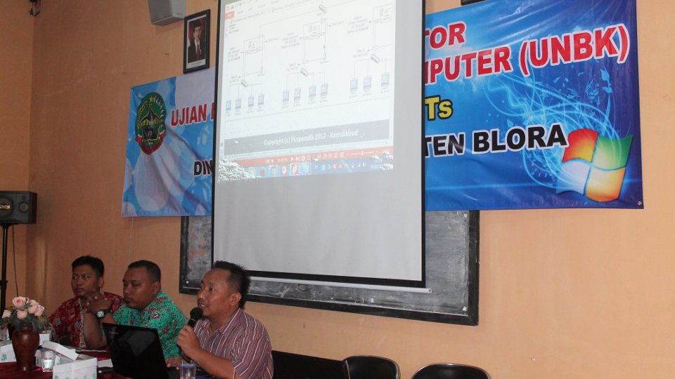 BLORA (wartablora.com)—Ratusan tenaga operator sekolah di SMP dan MTs se-Kabupaten Blora diberi pengetahuan dan pelatihan dasar dalam mengoperasikan server untuk Ujian Nasional Berbasis Komputer (UNBK). Pelatihan ini digelar di Ruang Pertemuan SMP Negeri 2 Blora, Selasa (7/2/2017). Pelatihan mendatangkan tenaga teknis dari Dinas Pendidikan dan Kebudayaan Provinsi Jawa Tengah.